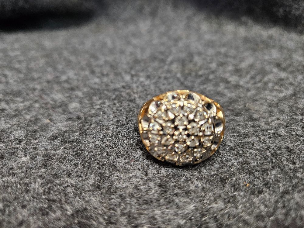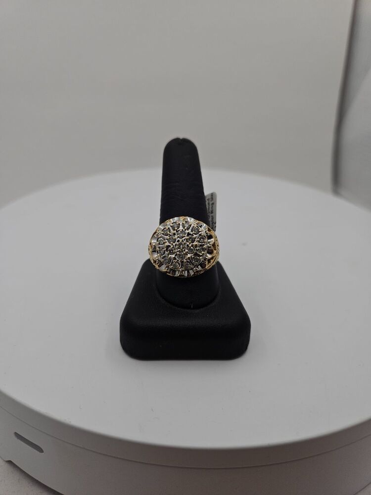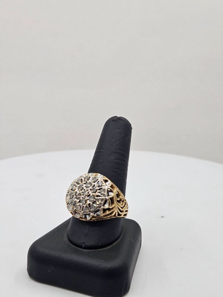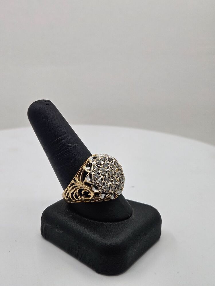 Experience timeless elegance with our stunning 14kt Yellow Gold Diamond Cluster Ring. Meticulously crafted, this sophisticated piece is beautifully encrusted with 1 carat total weight of shimmering diamonds, exuding enchanting sparkle at every angle. The exquisite cluster design adds a touch of luxury, evoking a sense of refined glamour. Offering a perfect fit for size 12.5, this ring is the epitome of sophisticated style. With only a limited quantity available, each piece promises an air of exclusivity. This captivating ring serves as a distinctive testament to love and commitment making you feel unique and radiant.