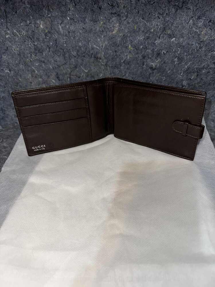 Step into the realm of luxury and sophistication with the dazzling Gucci Men's Leather Bifold Wallet. Framed in the finest Italian leather, this masterpiece exudes elegance and class. Meticulously crafted in Gucci's iconic Florentine atelier, it reflects the perfect mix of functionality and style. Open it to reveal a spacious interior with plentiful compartments, perfect for organizing your essential cards and cash. Its bifold design unfurls like a mystery waiting to unfold, seamlessly merging compactness with grandeur. The wallet's sleek silhouette slips effortlessly into your pocket or bag, making it your perfect accessory on-the-go. Each piece echoes Gucci's laudable commitment to quality craftsmanship with its minute attention to detail. In addition, the wallet comes with a pristine dust bag, an artful touch that protects your precious monetary guardian. Adorned with the legendary Gucci logo, this dust bag further elevates the tasteful allure of the wallet, marking a touch of opulence in every gesture you make. Embrace the Gucci Men's Leather Bifold Wallet - a statement piece that holds more than just your valuables, it holds the essence of a brand noted for its exquisite fashion sense. A symbol of unapologetic luxury, be prepared to leave an unforgettable impression.