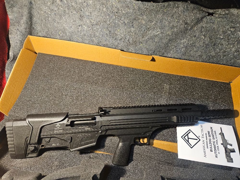 American Tactical would like to introduce their latest import from PARS MFG in Turkey, THE BULL-DOG. This semi-automatic 12 Gauge shotgun's new age look and modular design is a perfect fit for all types of gun owners. From the quick acquisition flip up sights, 3 inches chamber and 3-piece choke tube set for our avid shot gun users, to the AR style charging handle, picatinny and M-Lok rails for tactical gun users. The SGA Bulldog also features an adjustable cheek rest, a picatinny cut out at the base of the magazine that allows you to slide your spare full or empty magazine onto the bottom picatinny rail and use the magazine as a fore grip. With an easy access quick release button to change mags fast and efficiently.