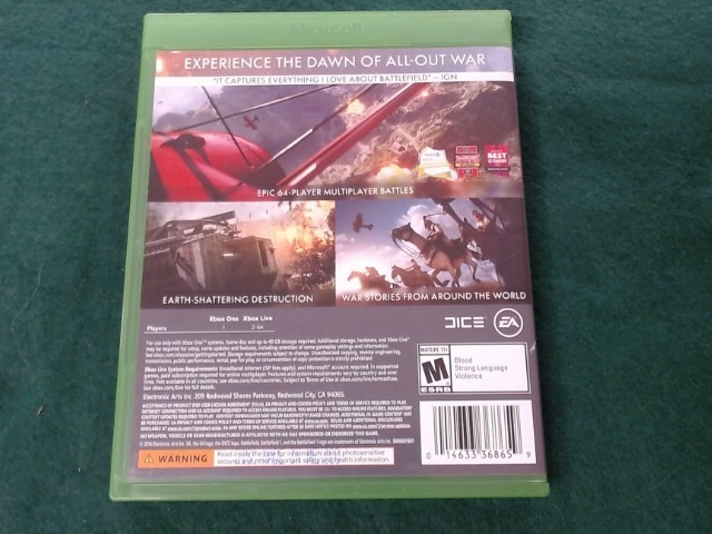 Experience the dawn of all-out war in Battlefield 1 on PS4. Fight your way through epic battles ranging from tight urban combat in a besieged French city to the heavily defended mountain forts in the Italian Alps or frantic combats in the deserts of Arabia. Discover a new world at war through an adventure-filled campaign, or join in epic multiplayer battles with up to 64 players, and adapt your tactics to the earth-shattering environments and destruction. Fight as infantry or take control of amazing vehicles on land, air and sea, from the tanks and bikes on the ground, to biplanes and gigantic battleships, and adapt your gameplay to the most dynamic battles in Battlefield history.