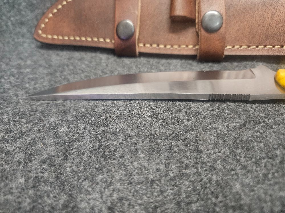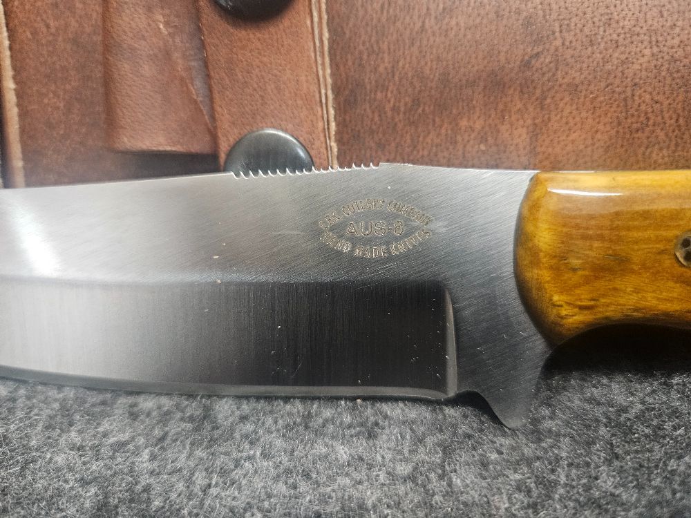 CFK Cutlery Company, is a US Trademark brand that is delivering its customers some of the finest, most affordable knives in the world. Each knife is handcrafted & handmade (one-of-a-kind) to the highest standards by a 3rd generation family of knife makers, using premium Japanese steels and manufactured in Japan. They work exclusively for CFK Cutlery Co. for the past 21 years. A premium buffalo leather dual carry sheath is custom fit to each knife and made snug fit.
