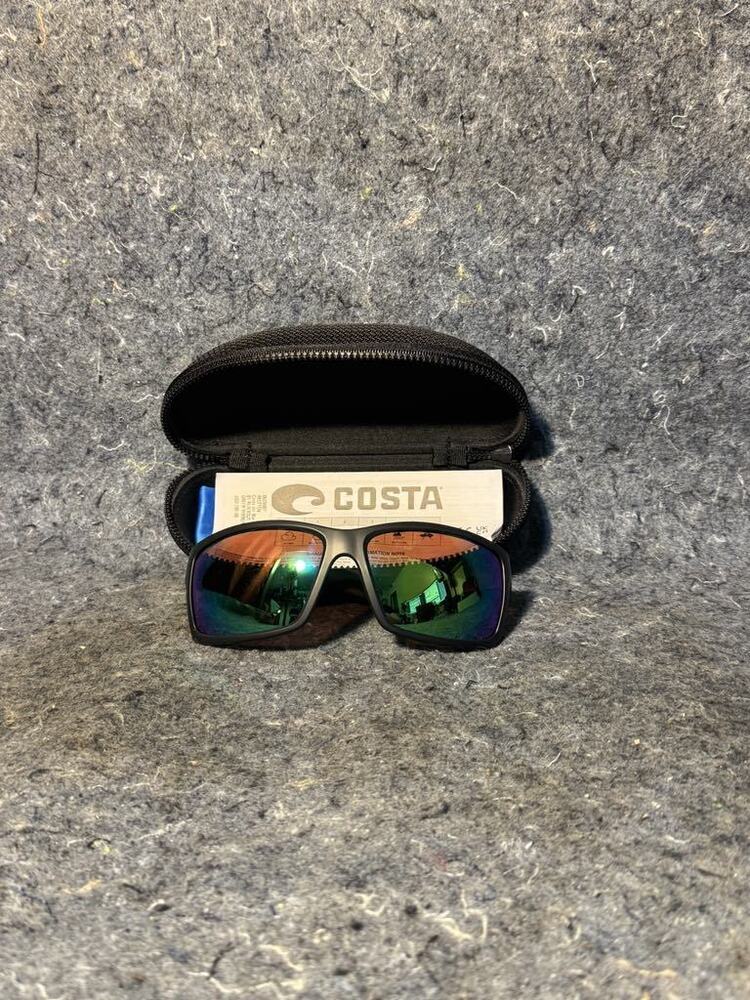 The Costa Reefton Black Frame Green Lens Polarized Sunglasses are ideal for the outdoor enthusiast seeking comfort, style, and optimal visual performance. Incorporating Costa's renowned polarized lens technology, these sunglasses eliminate glare and reduce eye strain, making them perfect for activities like fishing, boating, or just enjoying a sunny day outdoors. The green lens enhances contrast and color, providing clear vision in both bright and low-light conditions. Notably, the frames are made from a bio-based nylon, making them durable, lightweight, and environment-friendly. The spacious frame size and integral hinges ensure maximum coverage and a comfortable fit. The glasses also feature vented nose pads for better grip and airflow, preventing slippage due to sweat. For added protection, the lenses are scratch-resistant and block 100% of harmful UV rays, further enhancing your safety during outdoor activities. The classic black frame with its sleek design complements any look or style. In summary, Costa Reefton Black Frame Green Lens Polarized Sunglasses are a perfect blend of high-quality optics, comfort, and durability and are a must-have accessory for any outdoor fanatic. Experience nature clearer and sharper with these high-performing sunglasses. Be it for boating, fishing, or a day at the beach, Costa Reefton has you covered.