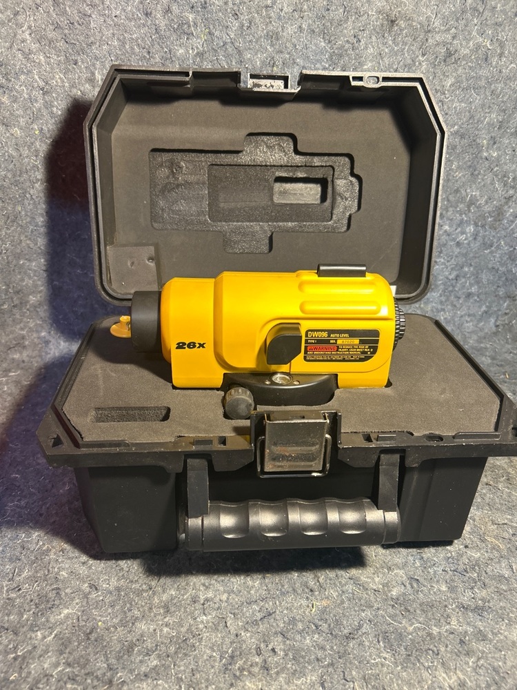 The DEWALT DW096 features a magnetically dampened compensator for easy set-up with optimum range and accuracy. This level is designed with 26 x magnification for 300 ft. plus range. This level features 360° horizontal circle for precise measuring of horizontal angles.