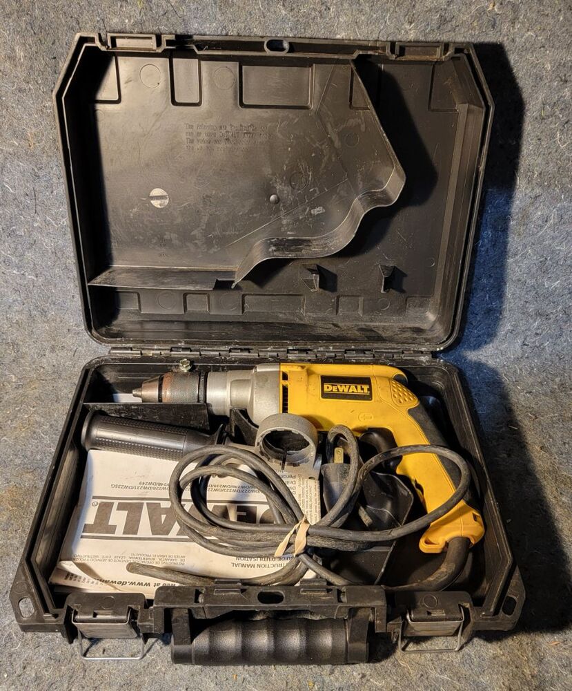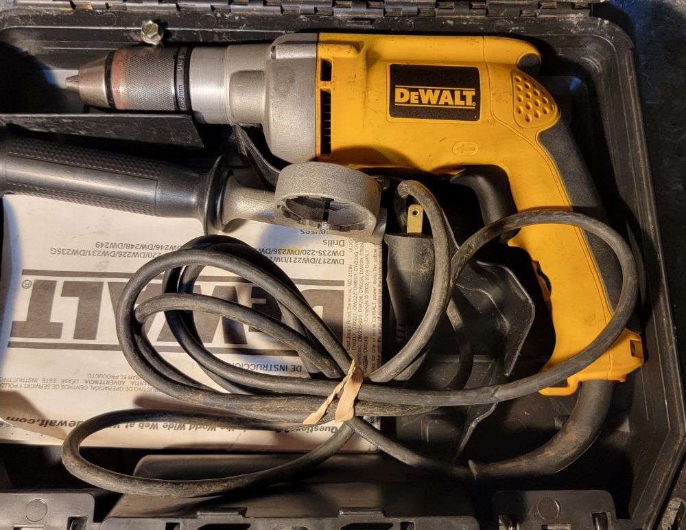 Designed for power, comfort and control, the DEWALT 1/2 in. 0-600 RPM Variable Speed Reversing Drill with Keyless Chuck is powered by a 7.8 Amp motor with helical-cut steel, heat-treated gears and a 0-600 RPM to tackle your toughest applications with ease. Extremely durable and efficient, this drill is also easy and comfortable to use with its long and slim handle, soft grip 2-fingered trigger design and 360° side handle for greater control and comfort no matter how long your jobs lasts. The single-sleeve keyless chuck with spindle lock provides greater bit retention and tool-free convenience for fast and easy bit changes, while the rugged metal housing ensures long-lasting and reliable use.