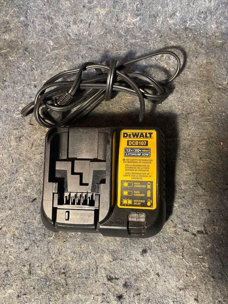 This is a genuine DEWALT OEM DCB107 12V/20V battery charger. The DEWALT DCB107 charger can charge all DEWALT 12V and 20V MAX Li-Ion battery packs (sold separately). It charges the battery in 1 hour or less, thus minimizing downtime. It has a built-in diagnostics system with an LED indicator that communicates battery charge status: charged, charging, power line problem, replace pack, and battery too hot or too cold. This battery charger requires 120V 60hz input power and has the standard 2-prong North American plug. Please reference the tool manual before purchasing to ensure the proper fit and care of these tool parts.