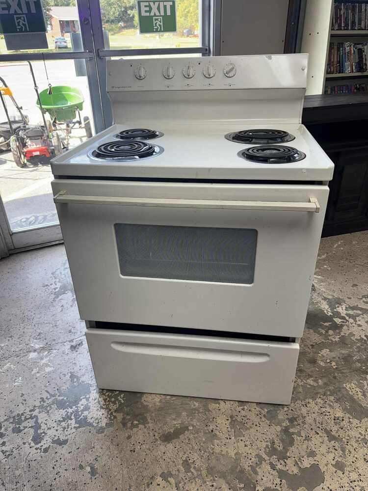 The Frigidaire FEF316AQA is a freestanding electric range with a sleek and stylish design suitable for any kitchen. The appliance features a sturdy stainless steel construction ensuring durability and long-lasting use. This range includes four electric burners with varying levels of heat for versatile cooking options. The elements can be controlled through easy-to-use knobs at the front of the stove, for cooking precision. The appliance also offers a standard bake and broil function in its roomy oven, which has a 5.3 cubic feet of cooking space, ideal for roasting large meats or baking multiple dishes simultaneously. The oven's self-cleaning feature is a significant benefit, as it reduces the need for harsh chemicals and labor-intensive cleaning. It also includes a storage drawer for additional convenience. The FEF316AQA model is equipped with advanced safety features like auto shut-off and cool-touch exteriors to prevent accidental burns. The oven window and interior light enable you to monitor your food without opening the door, ensuring heat and flavor are retained. In summary, the Frigidaire FEF316AQA electric range is a reliable and flexible appliance, perfect for those who love to cook and want to make meal preparation more efficient and enjoyable.