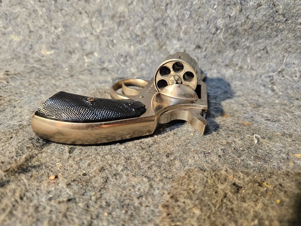 The Harrington & Richardson (H&R) Model 733 is a 6-shot, double-action revolver, typically nickel-plated with a 2.5-inch barrel, chambered for the .32 S&W Long cartridge, known as an affordable, compact handgun for personal defense, featuring a swing-out cylinder and a transfer bar safety.