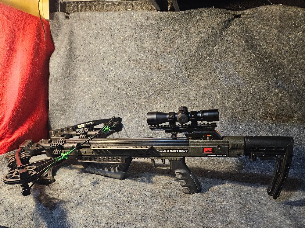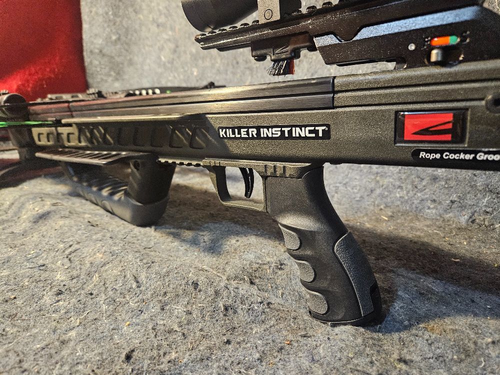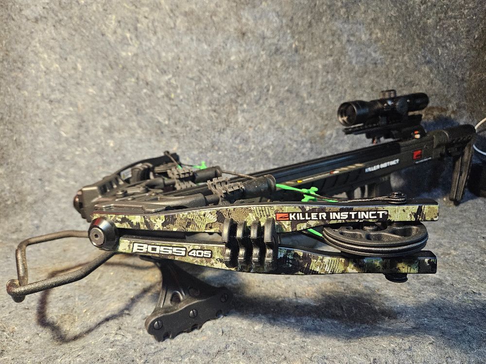 A deadly combination of high-octane fire power and agility, the BOSS™ hits targets hard at 405 feet per second. The 6-position AR-style buttstock shortens the crossbows overall length for smaller frame hunters but extends comfortably to fit a variety of medium to taller shooters as well. The dependability and tack driving accuracy Killer Instinct is known for is produced by a new Micro-Lite aluminum barrel that eliminates excess weight while still producing dead-on accuracy. The new X-Lok adjustable foregrip and easy-to-handle narrow frame produces a balanced and compact shooting machine. Finished off with a noise reducing integrated Dead Silent Kit, the Boss 405 is sure to produce deadly results.