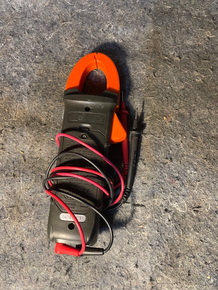 - Clamp meter measures AC current via the clamp and AC/DC voltage, resistance and continuity via test-leads