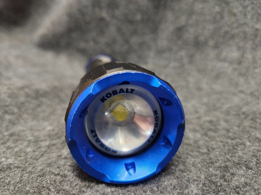 The Kobalt Focusing LED Flashlight is designed for those who need a powerful and versatile lighting solution. With an impressive maximum output of 1500 lumens, this flashlight is perfect for a wide range of activities, from outdoor adventures to professional use. The four different mode; High, Medium, Low, and Strobe, ensure that you have the right amount of light for any situation. The twist focus feature allows you to easily adjust the beam from a focused spot to a wide flood, providing flexibility for different tasks. The flashlight's dual power source capability means you can use either the included rechargeable battery or AAA batteries, giving you options for extended use. The battery power indicator helps you keep track of the remaining battery life, ensuring you are never caught off guard in the dark. With up to 10 hours of runtime on low mode, this flashlight is reliable for long-duration tasks. The included USB charger and hassle-free lifetime guarantee add to its convenience and reliability, making the Kobalt Focusing LED Flashlight an essential tool for both every day and emergency situations.