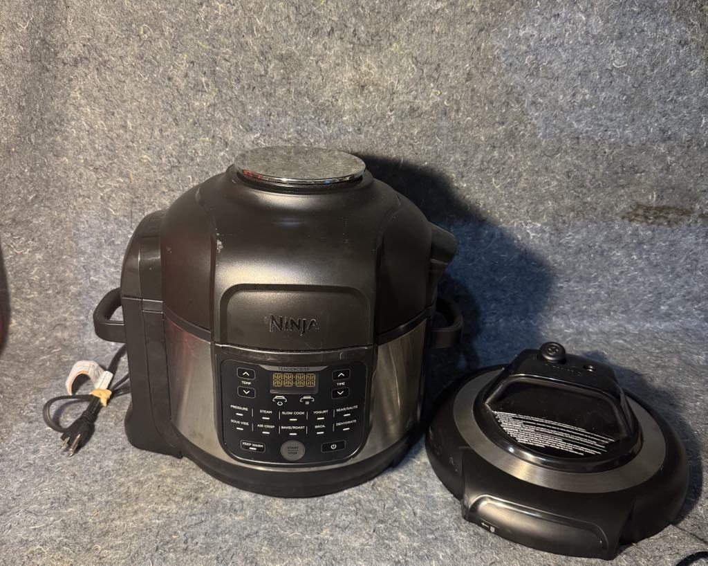 The Ninja Foodi Air Fryer Pressure Cooker Combo 11-in-1 Pro is a versatile kitchen appliance, perfect for cooking enthusiasts and health-conscious individuals with its 6.5-quart pressure cooking capacity. It's more than just a pressure cooker - it's also an air fryer, offering the ability to steam, slow cook, and more. Space-saving yet immensely functional, this combo cooker features a 4.6-quart crisper plate, allowing you to get that perfect crispy texture on your dishes without the need of excessive oil. You can enjoy guilt-free fries, chicken wings, and other favorite snacks prepared in a healthier, less oily way thanks to its air frying option. This 11-in-1 Pro model ensures easy usability with its intuitive digital controls, making it convenient for beginner cooks and professional chefs alike. Its one-touch functionality lets you switch from pressure cooking to air frying effortlessly. Included with this all-in-one appliance are a pressure lid, a crisp basket, and a stoneware bowl, adding layers of versatility to your meal preparation. With a stainless steel finish, it's designed for heavy use while adding a sleek look to any kitchen. It's not just a kitchen appliance; it's a lifestyle upgrade.