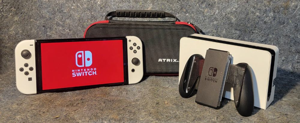 Play at home or on the go with a vibrant OLED screen. Play on your TV at home or pick up and play in handheld mode on a vivid 7-inch OLED screen with the Nintendo Switch – OLED Model system. The system also features 64 GB of internal storage, enhanced audio, a wide, adjustable stand, and a dock with a wired LAN port. Enjoy three modes in one system. TV mode: Connect your system to the TV using the included dock to enjoy a traditional gaming experience in HD. Handheld mode: Bring your games on your next travel adventure and enjoy playing on a 7-inch OLED screen that makes colors pop. Tabletop mode: Use the wide, adjustable stand to position the screen and detach the included Joy-Con controllers to enjoy game time even without a TV. Games for the whole family. Nintendo Switch systems are the home of games like Super Mario Bros. Wonder, Mario Kart 8 Deluxe, and others starring Mario and friends. And don’t forget series like Animal Crossing, The Legend of Zelda, Splatoon, Pikmin, and more! Connect and play together. Share the smiles! You can buddy up on one system, play online, or even link your systems together wherever you are for multiplayer favorites like the Super Smash Bros. Ultimate game. Joy-Con controllers included. The two included Joy-Con controllers let you play multiplayer games right out of the box—just pass one to a friend and go. Attach them to the screen for handheld mode or use both as a single controller when you play on the big screen. Plus, built-in motion controls really put you in the game in titles like Super Mario Party.