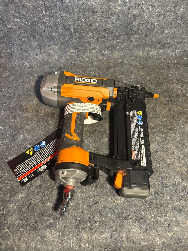 RIDGID introduces the 18-Gauge 2-1/8 in. Brad Nailer with CLEAN DRIVE Technology, Tool Bag, and Sample Nails. This 18-gauge brad nailer features CLEAN DRIVE Technology, which boasts 17X more consecutive perfect drives than the competition. CLEAN DRIVE Technology means you can spend less time fixing and more time working. With registration, this nailer is backed by the Industry's Only Lifetime Service Agreement. Included with the 18-Gauge 2-1/8 in. Brad Nailer are a tool bag, and an operator operator's manual.