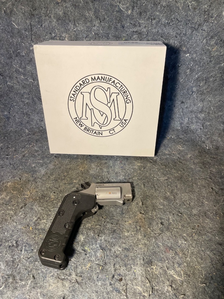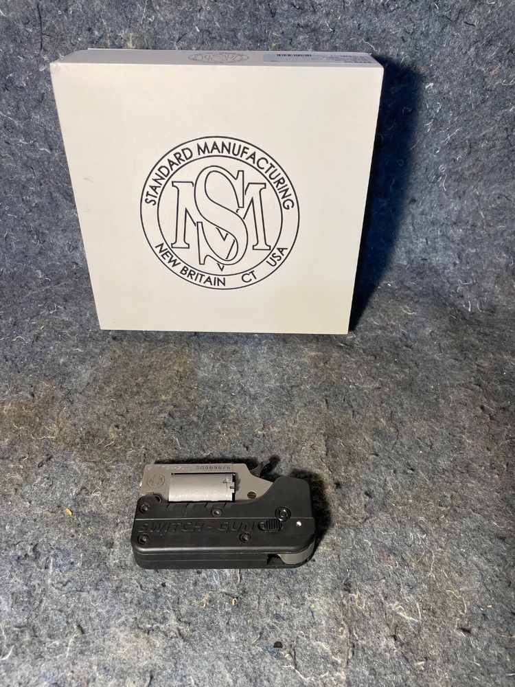 The latest advancement in personal protection from Standard Manufacturing is the revolutionary new switch gun. The switch gun fits into your pocket and occupies about the same space as your cell phone. When in the folded position, the grip of the switch gun completely encapsulates the trigger to prevent an accidental discharge. Upon depressing a button, the switch gun immediately springs open as it is ready for the immediate and reliable discharge of five .22 Magnum cartridges. It can be folded into a very small form factor and stored in your pocket to conceal when not in use. Unlike any of its competitors, the switch gun features a large handle to provide a tremendous grip similar to a full-sized revolver which provides the highest degree of control and accuracy.
