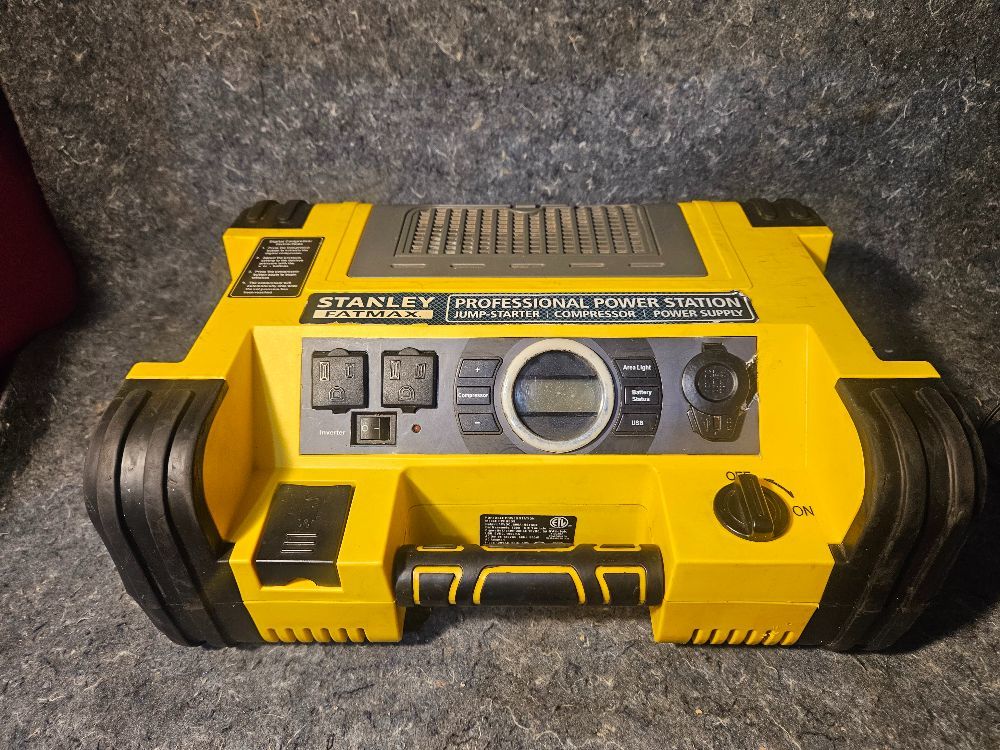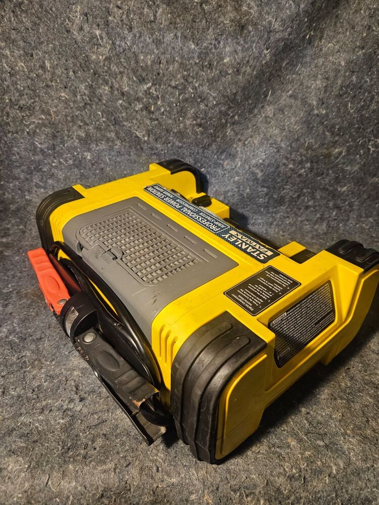 With the STANLEY Professional Grade Jump Starter and Power Station, you can rest easy knowing you have all your power needs whether you are headed to the beach, campsite, or tailgate party. This compact, portable device with a low-profile housing design delivers serious jump-starting power with 1400 peak amps and 700 instant starting amps. That's enough power to jump start a 12-volt battery in your car, truck, SUV, motorcycle, boat, RV, ATV, or tractor; all without the need to use another vehicle for assistance. Simply connect the powder coated heavy duty metal clamps to the battery with cables, turn on the switch, and start your vehicle. The reverse polarity alarm will alert you when there is an improper connection. A high-powered LED light and LCD screen readout with real time information helps you work in the dark. This jump starter is equipped with a 500W inverter and a digital 120 PSI air compressor with Autostop functionality and SureFit nozzle to help inflate tires that have low pressure. The built-in 120V AC outlet and USB port come in handy to charge your phone and electronic devices for up to 10 hours. It features an integrated charging cube (an AC charging adapter) that allows the STANLEY PPRH7DS Professional Grade Jump Starter and Power Station to be charged using a standard household extension cord, so you don't need to keep track of a separate specific charging cable. Extension cord sold separately. Includes a limited 1-year manufacturer warranty.