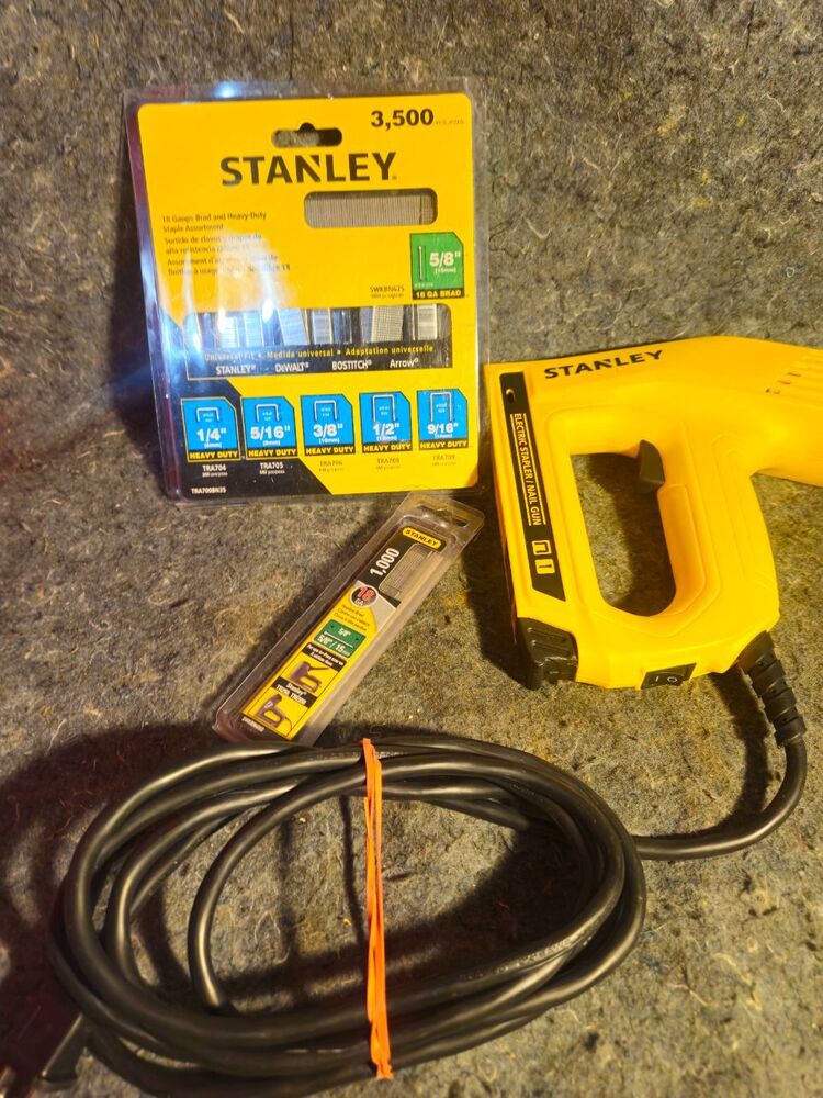This is a versatile 2-in-1 unit that operates as both a staple gun (for use with insulation, ceiling tile, carpet padding, etc) and a brad nailer (for use with molding, picture frames, hobby projects, etc). This product includes a hi/low power feature that allows you to tailor the output force to the material you are stapling into. The anti-jam feature prevents staples from being jammed. The 8 Ft. cord, which is much longer than the cord found on some electric staple guns, prevents you from having to use an extension cord for every job. This product also has a soft grip handle and trigger for comfort.
