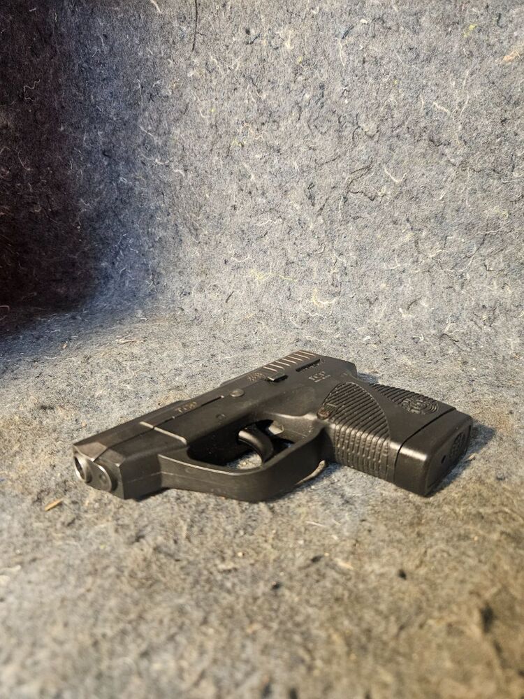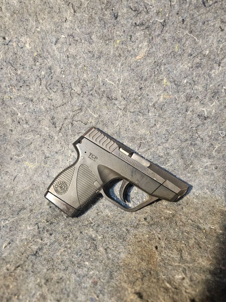 The Taurus PT 738 TCP is a lightweight, compact .380 ACP pistol designed for concealed carry, known for its reliability and ease of use. The PT-738 Taurus Compact Pistol (TCP) is the lightest firearm Taurus has ever created. The Taurus 738 TCP is made in the USA and offers 6 +1 shots of .380 ACP, a durable polymer frame and low-profile fixed sights. This example comes with one magazine and shows little wear.