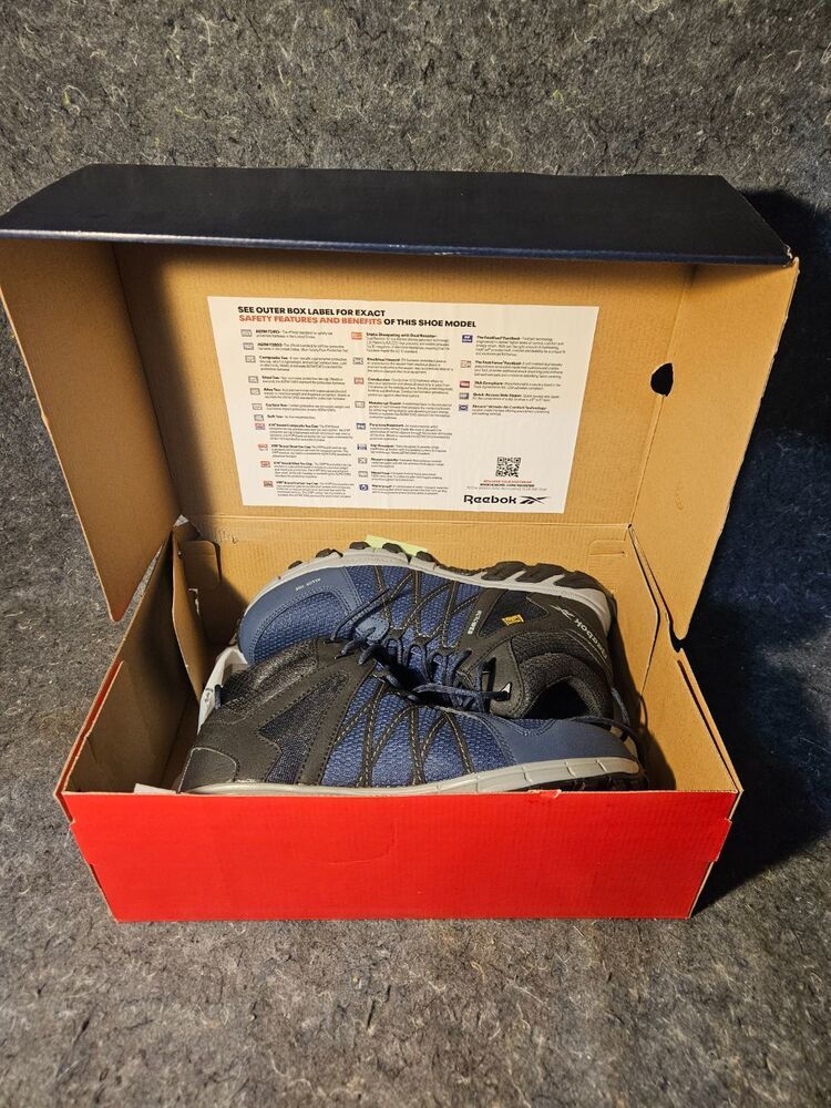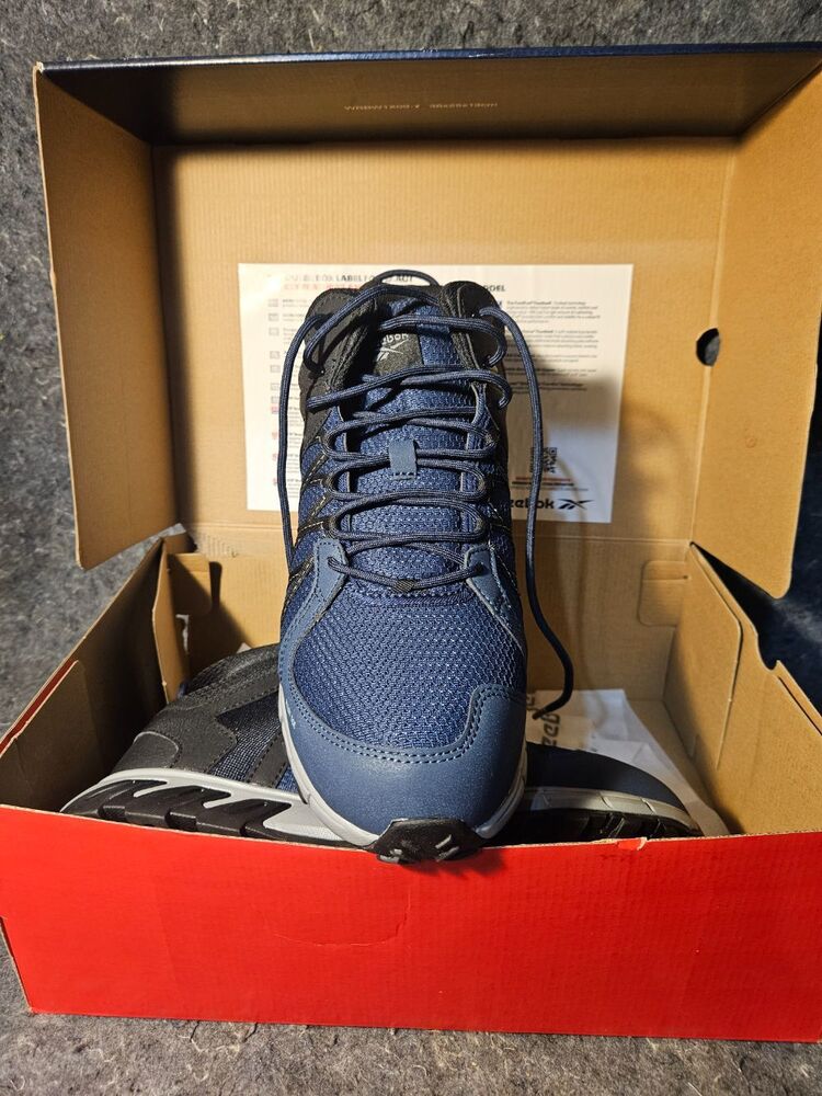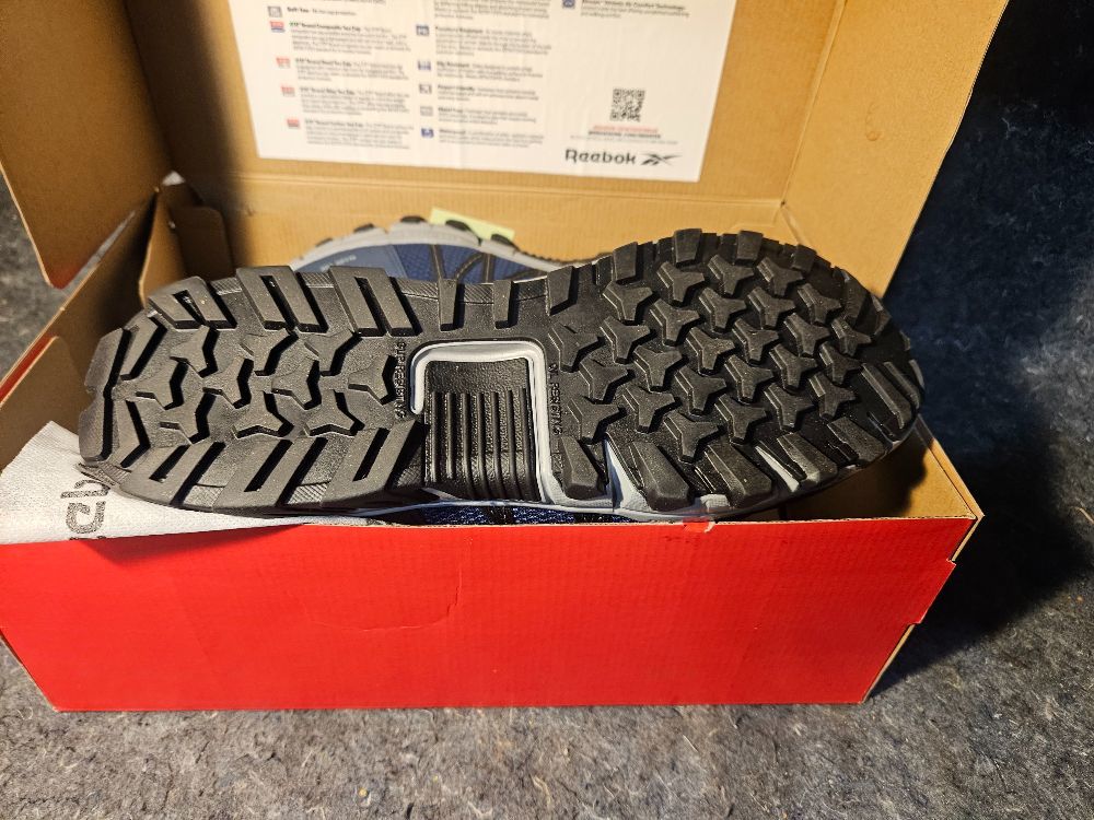 Charge through work with the Reebok Trailgrip Work, featuring an active traction rubber lug pattern with outstanding gripping power. A MicroWeb lacing system keeps your foot locked in with lateral stability. The MemoryTech Massage footbed adapts to the contours of your foot. The alloy toe and CushGuard™ Internal Met Guard meet or exceed ASTM F2413 safety standards.