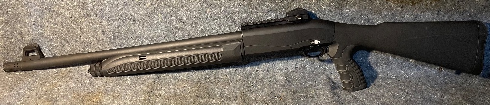 Gas operated semi-automatic. Bolt remains open after last round is fired. If magazine and chamber are both loaded, opening action will result in ejecting shell from chamber but will not cycling new shell from magazine into the chamber. Magazine cut-off is located near trigger guard and must be pushed to eject shell from magazine. This allows shooter to clear chamber but keep magazine loaded.