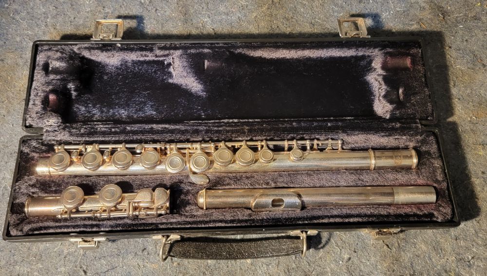 Yamaha Vito model 113-II student flute, which was a model made in Japan and marketed by G. Leblanc Corporation to offer a lower-cost alternative to Yamaha's own brand. These silver-plated, nickel silver flutes are considered exact replicas of the Yamaha YFL-24S model, featuring a closed-hole, offset-G key system and a C-foot.